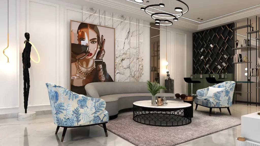 The more luxury-focused interior designers take fully real glass walls and designer staircases, and combine them with luxury-focused spatial design, focusing on top and sculptural ceilings. This approach reinforces the intended exclusivity of the overall design.